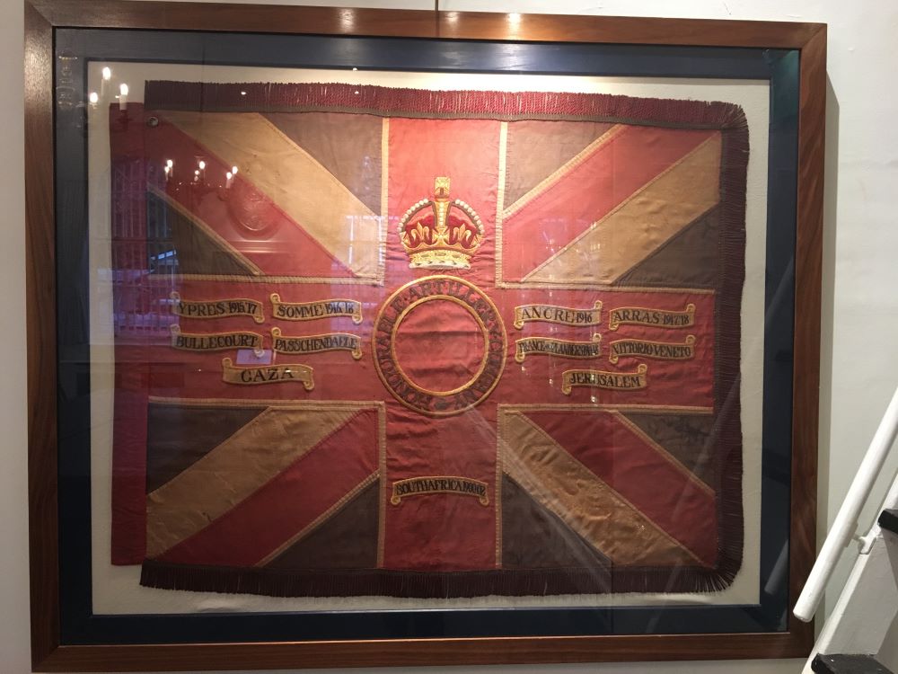 Note - The King's Colour of the 3/1st (City of London) battalion The London Regiment is mounted within this stand of King's Colours of the RRF Service Battalions.