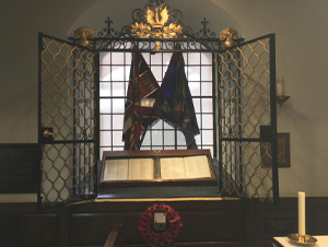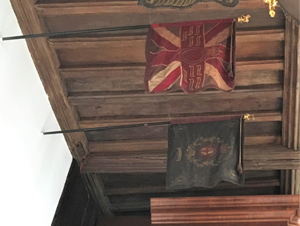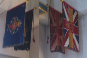 Amongst group of War Raised Battalion Colours in the Regimental Chapel of the Church of the Holy Sepulchre, Holborn Viaduct
